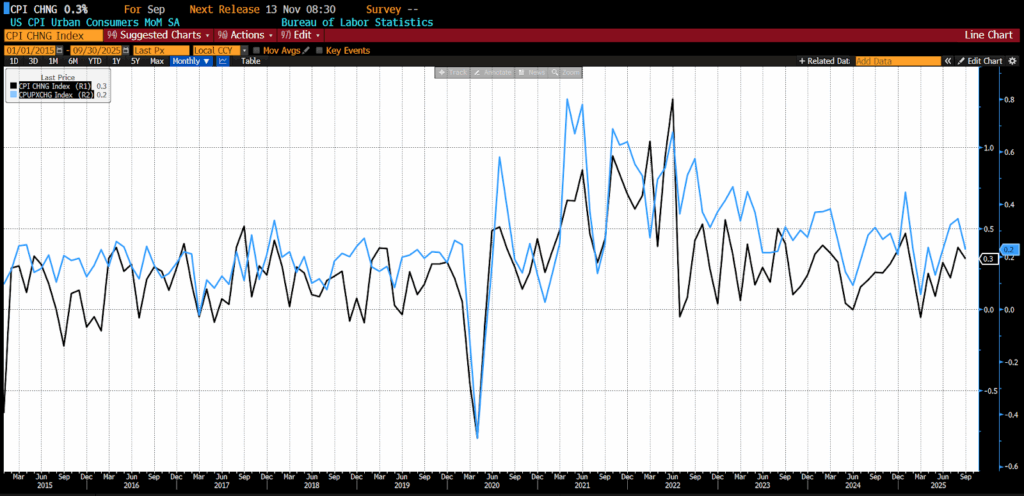 September 2025 US CPI headline and core month-over-month (2015 – present)