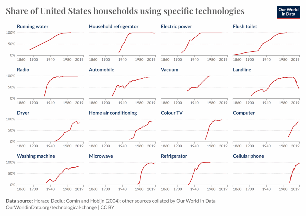 Meanwhile, ever since the industrial revolution, there has been an explosion of technological advancement and proliferation that has almost completely transformed all economic industries and everyday life across the globe.