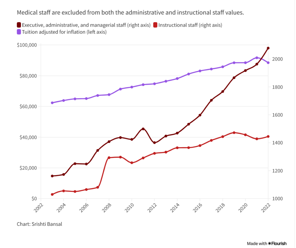 Administrative bloat — the phenomenon of nonteaching administrative positions outpacing the growth of faculty for face-to-face instruction — largely exists to generate evidence of compliance with federal dictates about education fairness and access, but has not been concerned with the quality of education offered. Bureaucratic growth not only diverts attention from core skills but also erodes overall workforce readiness.