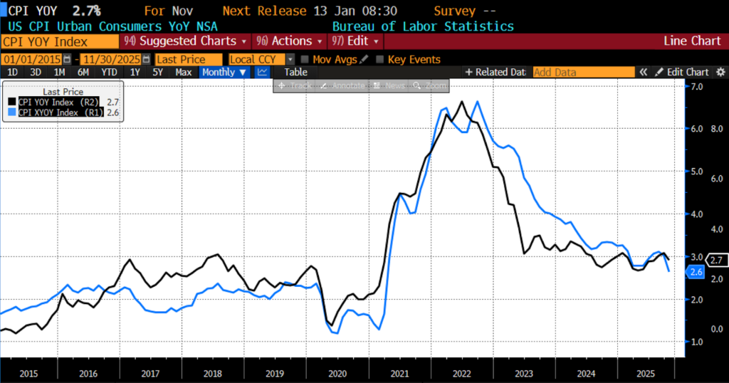 October-November 2025 US CPI headline and core year-over-year (2015 – present)