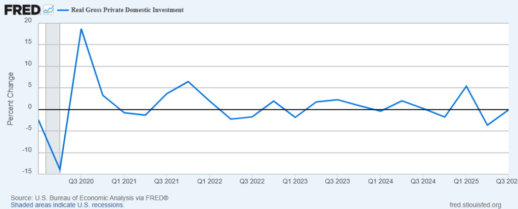 Figure 6: US Real Gross Domestic Private Investment, Quarterly Growth, Q1 2020 to Q3 2025