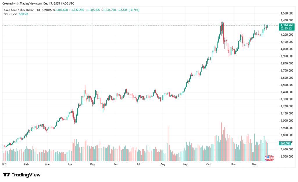Figure 2: Gold Spot Price, Jan. 2025 to Dec. 2025 (source: TradingView)