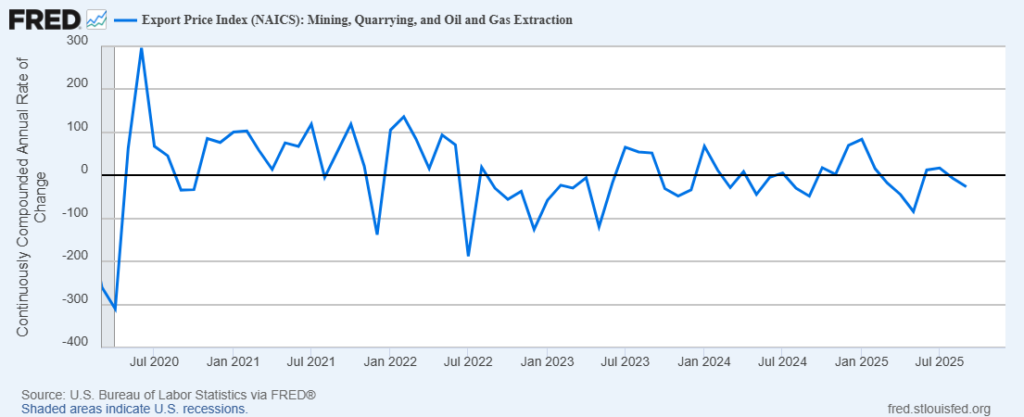 Figure 6: Growth Rate of US Export Price Index for Mining, Quarrying, and Oil and Gas Extraction